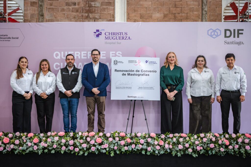 “Hoy vamos a pensar y a concientizarnos en que la detección temprana puede salvar vidas”, expresó el Alcalde en su mensaje, “hoy, pensemos en que hay instituciones, como el Gobierno de Santiago, que se preocupan y se ocupan de contribuir a la prevención de esta terrible enfermedad, con programas de salud, con consultas de nutrición, con pláticas y conferencias con especialistas, y con convenios como el que hoy estamos refrendando con el Hospital Christus Muguerza Sur, para la realización de mastografías totalmente gratuitas para todas las mujeres de Santiago”.