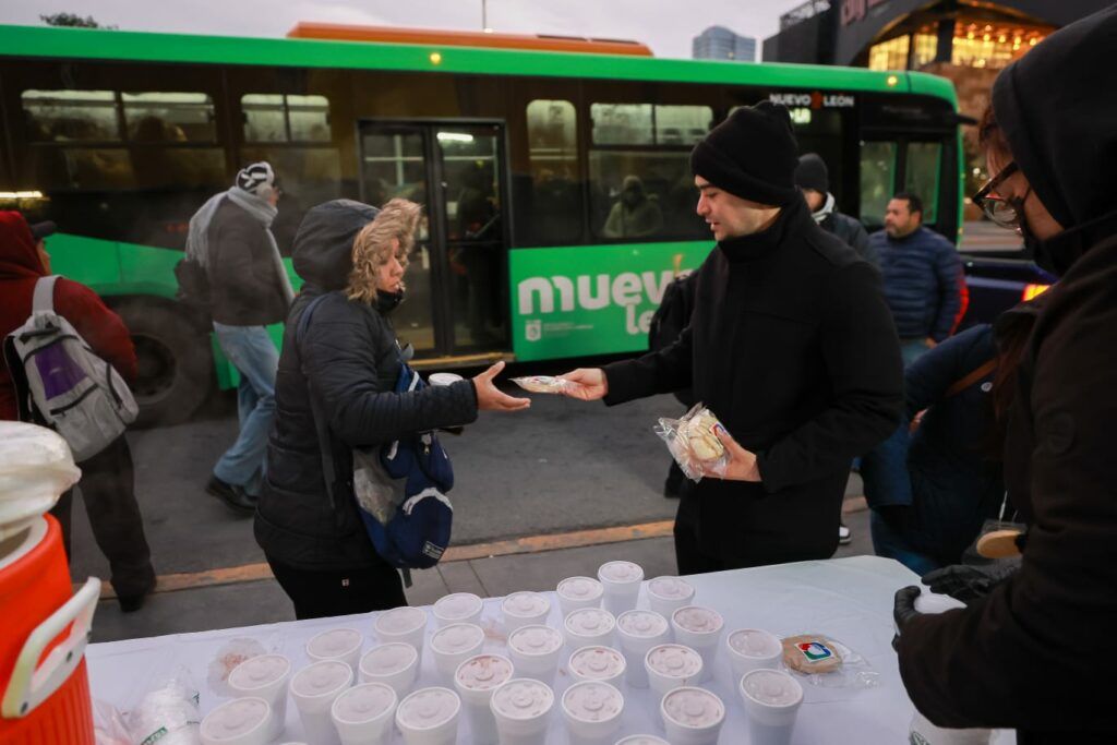 San Pedro, NL.- Ante las bajas temperaturas que se registran en la región, el Municipio de San Pedro Garza García implementó este día un operativo invernal de apoyo a la ciudadanía en paradas de transporte urbano con mayor afluencia, donde se entregaron bebidas calientes y pan a usuarios que esperaban su traslado, y se instalaron calentadores.