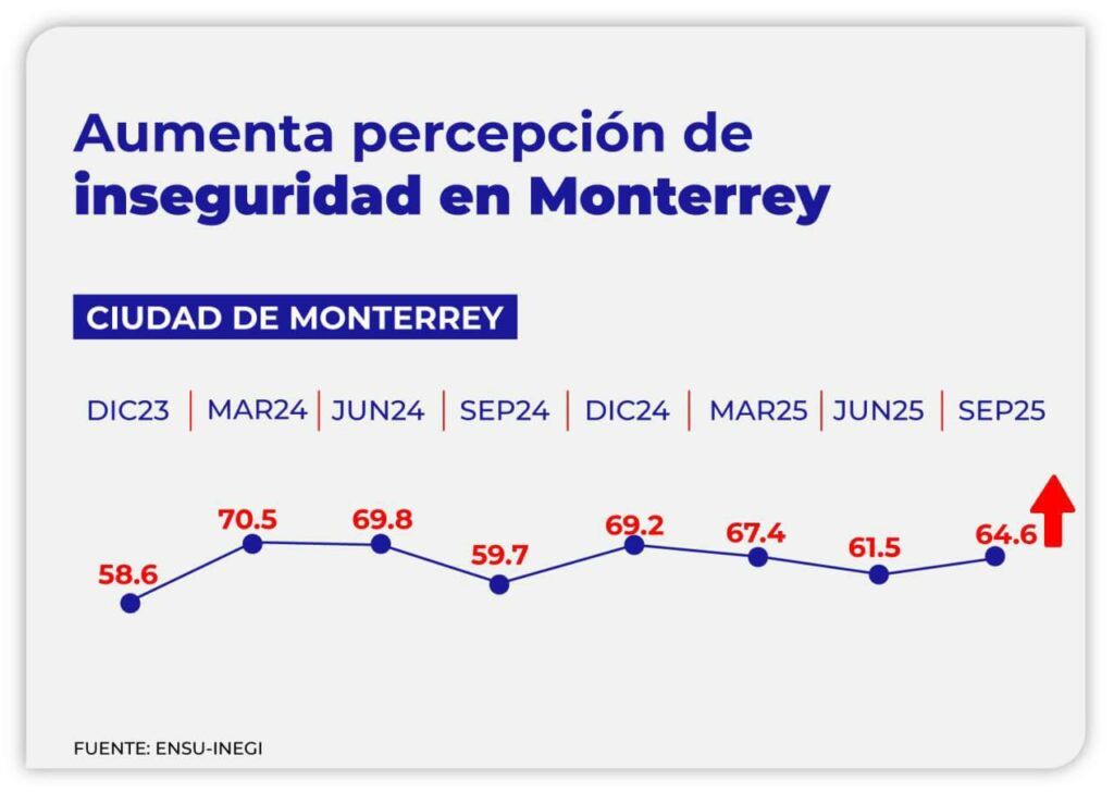 - La percepción de inseguridad en Monterrey se disparó durante los meses de junio, julio, agosto y septiembre de 2025.