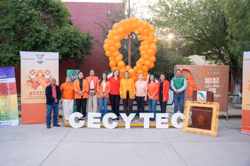 Castaños, Coahuila.- En el marco de la conmemoración del Día Naranja, el Gobierno Municipal de Castaños encabezado por la alcaldesa Yesica Sifuentes Zamora llevó a cabo una jornada de sensibilización con estudiantes del CECYTEC Castaños, donde se destacó la importancia de prevenir, atender y erradicar la violencia contra mujeres y niñas.