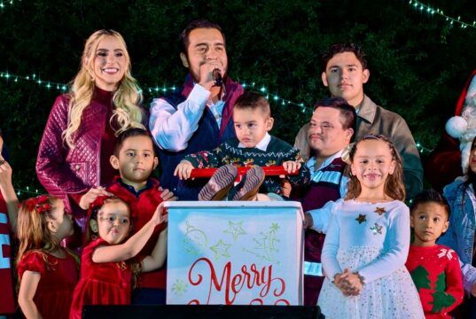 Disfrutan cientos de familias gran encendido del Pino Navideño
