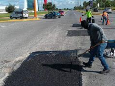 A doble turno, avanza plan emergente de bacheo en Victoria