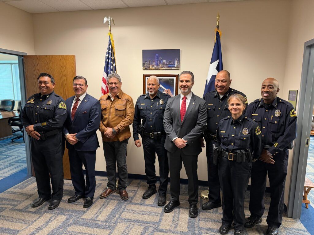 Monterrey, NL.- Para conocer las tareas de vigilancia policial urbana y seguridad comunitaria, el alcalde Adrián de la Garza sostuvo una reunión privada con Daniel C. Comeaux, jefe del Departamento de Policía de Dallas.