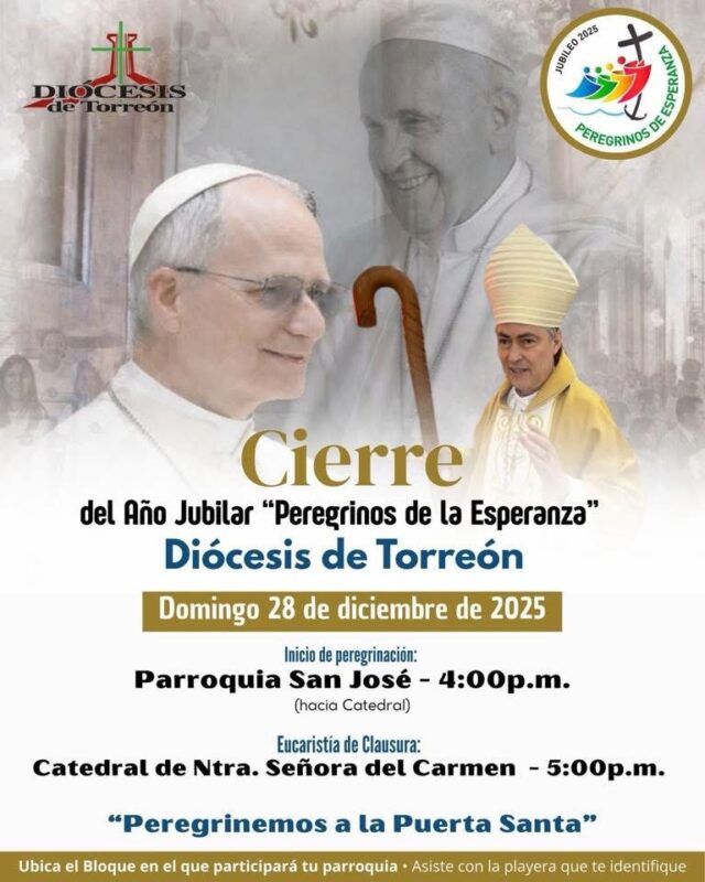 Torreón, Coahuila.-En un ambiente de esperanza y unidad, la comunidad parroquial convoca a los fieles a participar en la peregrinación y Eucaristía de clausura del Año Jubilar, que se llevará a cabo este domingo 28 de diciembre.