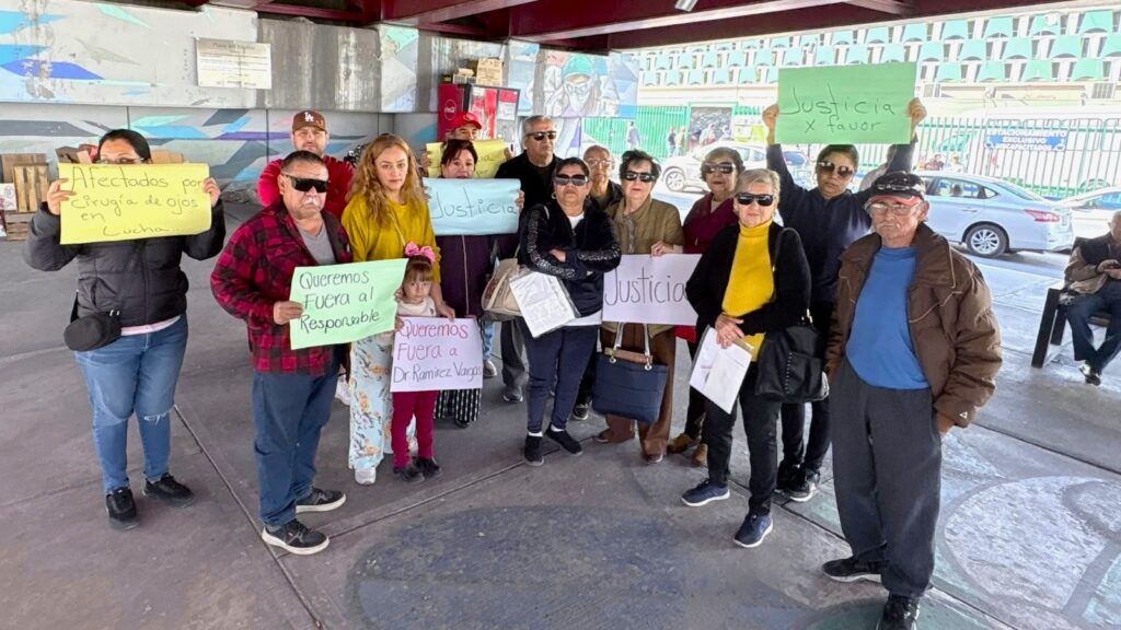 Monclova, Coah. — Alrededor de 70 derechohabientes del Instituto Mexicano del Seguro Social (IMSS) se manifestaron para denunciar graves afectaciones en su vista derivadas de cirugías de cataratas realizadas en la Clínica 7 de Monclova, entre ellas pérdida total de la visión.