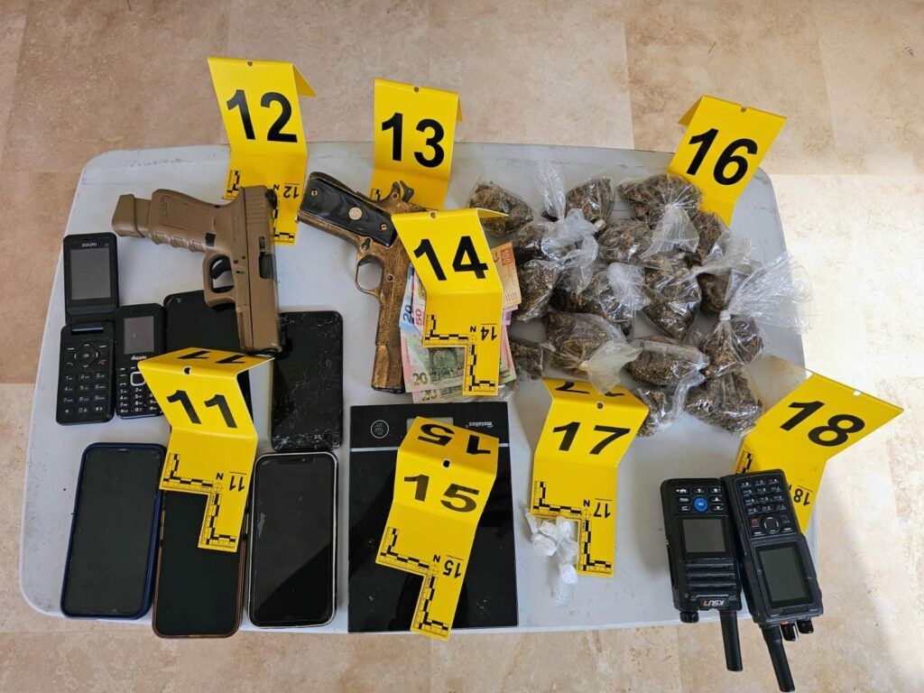 De acuerdo con información preliminar, durante el operativo fueron detenidos tres masculinos, además del aseguramiento de dos armas de fuego, dos cargadores, cartuchos de diversos calibres, así como dosis de narcóticos con características similares a marihuana y cocaína.