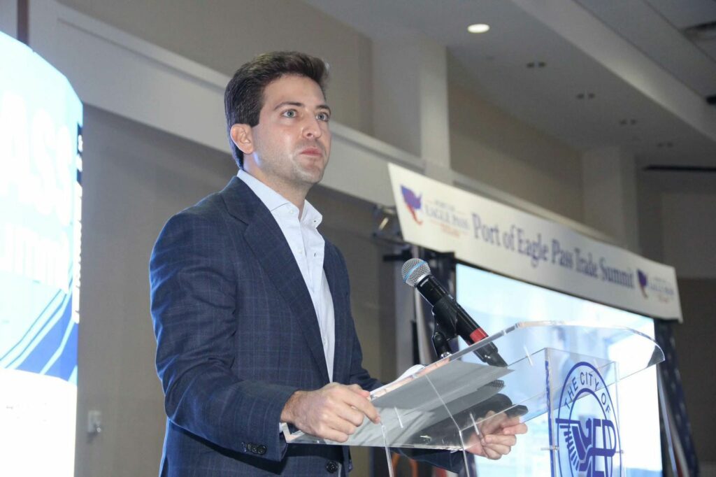 Saltillo, Coahuila de Zaragoza- Con la representación del gobernador Manolo Jiménez Salinas, Blas flores González, jefe de Gabinete y Proyectos estratégicos, participó en al Cumbre Comercial 2025 del puerto de Eagle Pass, que se llevó a cabo en el marco de la celebración del mes del comercio mundial.