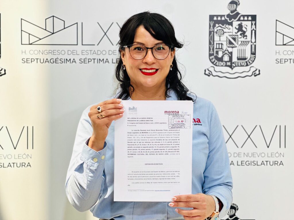 Monterrey, NL.- Con el objetivo de transformar la protección del patrimonio cultural en una política pública efectiva y con base legal, la diputada local Grecia Benavides, del Grupo Legislativo de Morena, presentó una iniciativa de reforma a la Ley del Patrimonio Cultural del Estado de Nuevo León. La propuesta busca que el Gobierno estatal esté obligado a asignar presupuesto, publicar un catálogo oficial y reconocer legalmente a los Barrios Históricos como zonas protegidas.