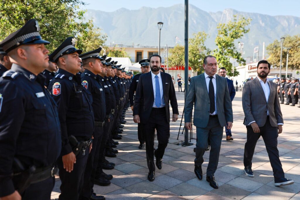 San Pedro, NL.- El Alcalde de San Pedro Garza García, Mauricio Farah, encabezó esta mañana el pase de lista y revista a la Secretaría de Seguridad Pública Municipal, en un acto que refrenda el compromiso de la administración con la seguridad y la paz en la ciudad.