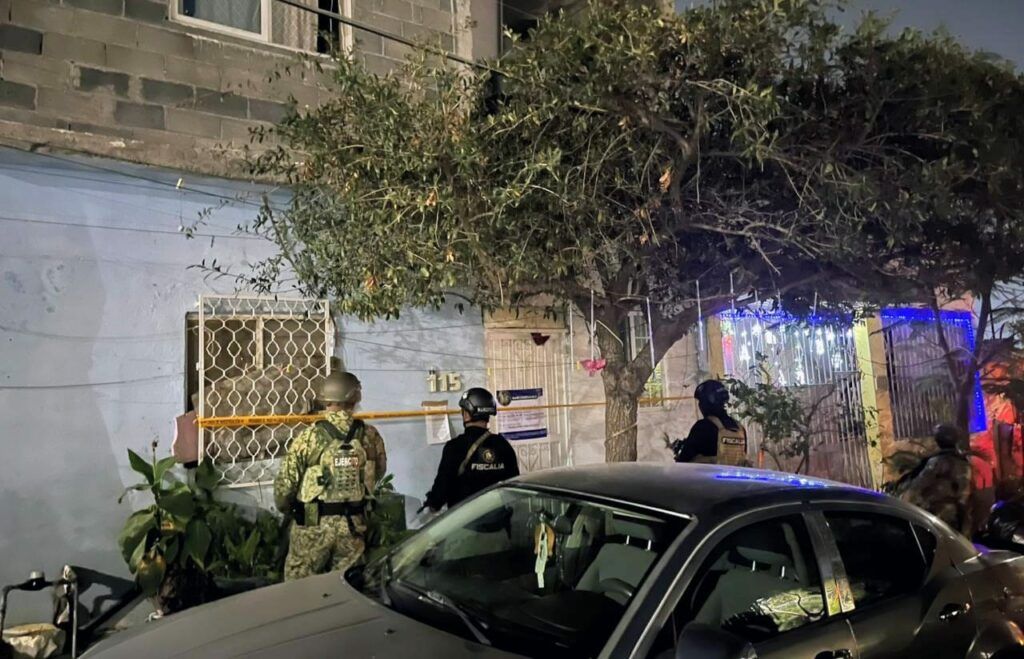 El primer cateo se efectuó en un domicilio ubicado en la calle Santa María, en la colonia San Miguelito Segundo Sector, en el municipio de Juárez. En el lugar se aseguró vegetal verde seco con características de marihuana, cartuchos hábiles para arma de fuego larga y papelería diversa, por lo que el resultado fue considerado positivo.