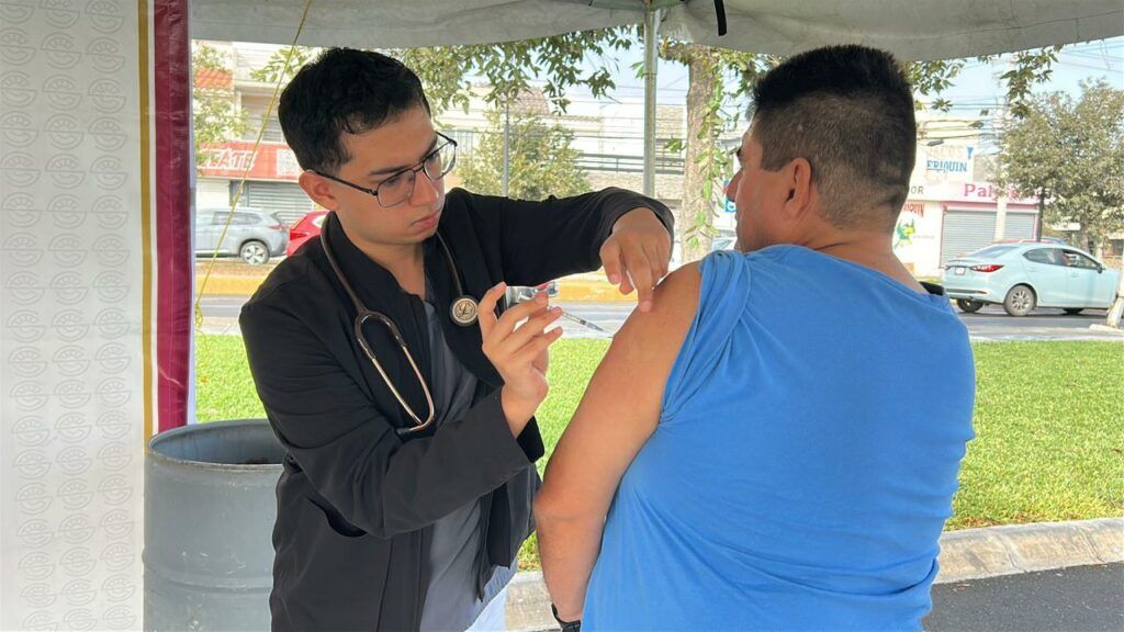 En coordinación con el Instituto Mexicano del Seguro Social, el personal médico de la Dirección de Salud Municipal aplicó las vacunas en la Colonia Bosques de la Huasteca, donde acudieron decenas de santacatarinenses.