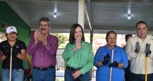 Con escoba y azadón, Sari lidera limpieza en la escuela Venustiano...