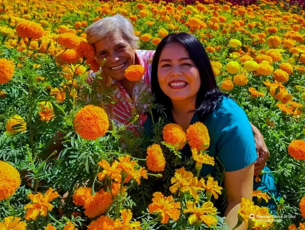 Torreón, Coahuila.- Como parte de las actividades que tienen el propósito de acompañarlos en un proceso de reflexión y resignificación del duelo, los participantes del taller “Nuevamente”, del Departamento de Psicología de la Dirección de Salud Pública Municipal realizaron una visita a los campos de cempasúchil de la región.