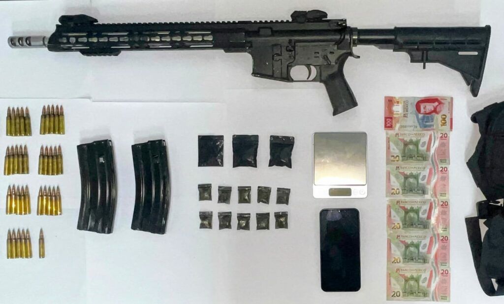 Al percatarse de la presencia policial, el hombre habría intentado huir, pero fue alcanzado por los agentes, quienes le aseguraron el arma y realizaron una inspección precautoria. Durante la revisión, encontraron entre sus pertenencias: