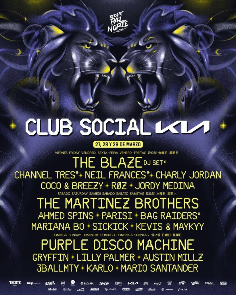 La fiesta y el baile tienen su residencia oficial en el Club Social y el escenario Oasis. Mientras que el Club Social vibrará con los beats electrónicos de Purple Disco Machine, The Martinez Brothers y The Blaze (DJ Set), el Oasis se inundará de frescura urbana y ritmos tropicales con la presencia de Omar Courtz, Rusowsky, Lasso y el talento de Ovy on the Drums. Ambos escenarios están diseñados para que el movimiento no se detenga ni un segundo durante los tres días del evento.